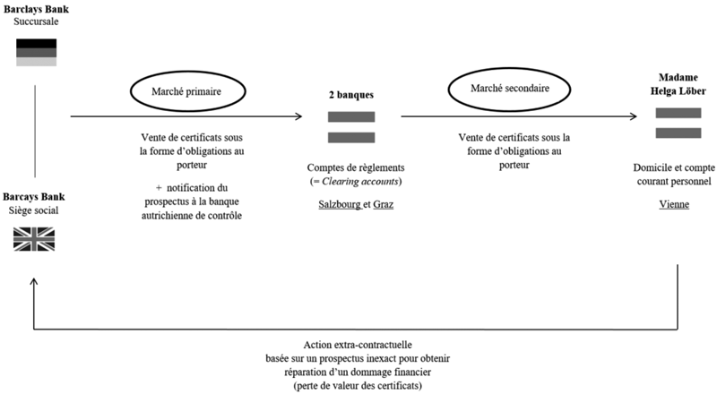 Madame Helga Löber est domiciliée en Autriche (à Vienne), où est également situé son compte courant personnel. Madame Löber a investi dans les certificats émis par Barclays Bank, en versant de son compte courant les montants correspondants aux certificats vers des « comptes de règlement » (clearing accounts) tenus auprès de deux banques autrichiennes distinctes, l'une établie à Salzbourg et l'autre à Graz. Le paiement de ces certificats a ensuite été réalisé depuis ces comptes de règlement.